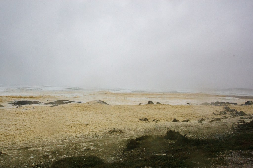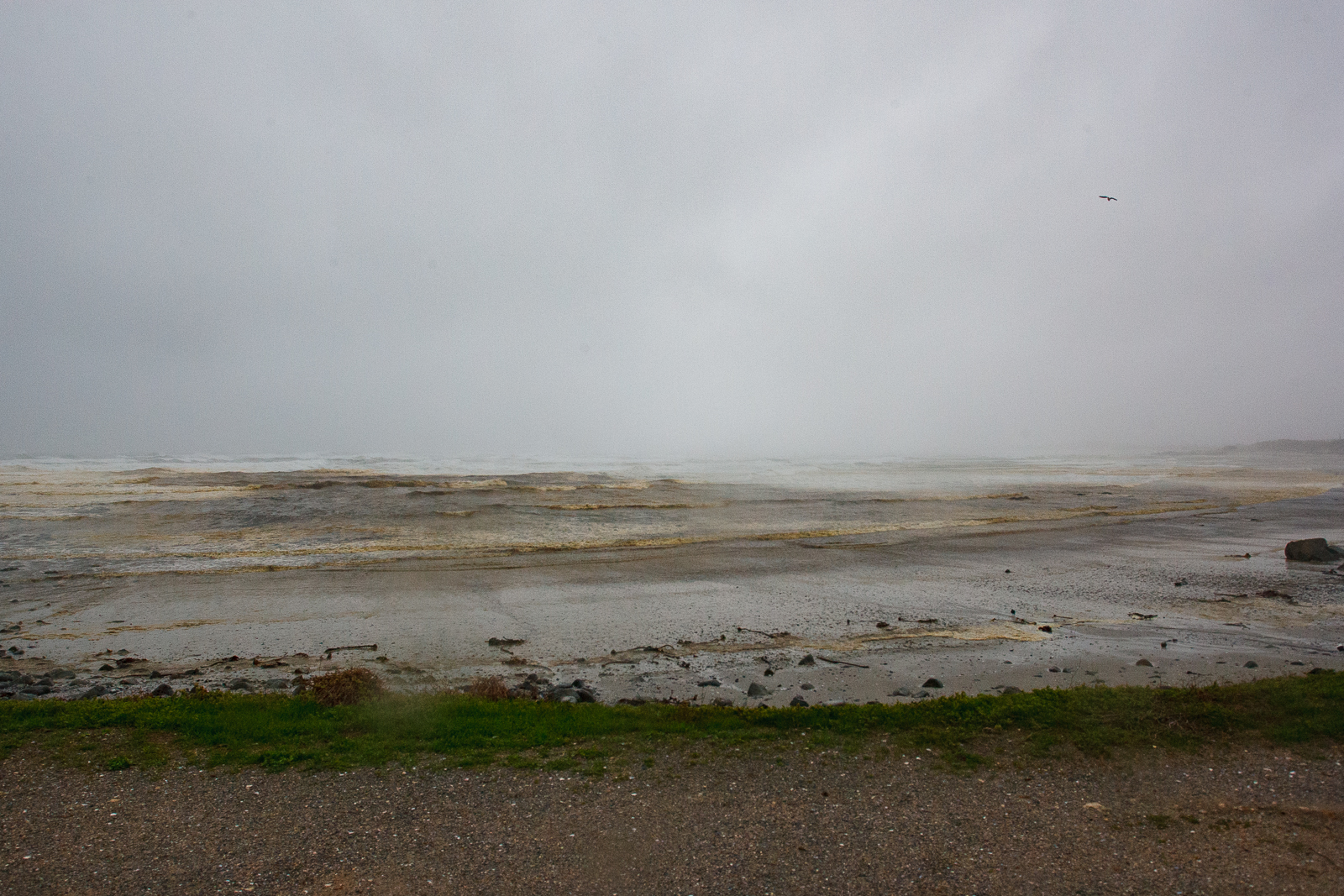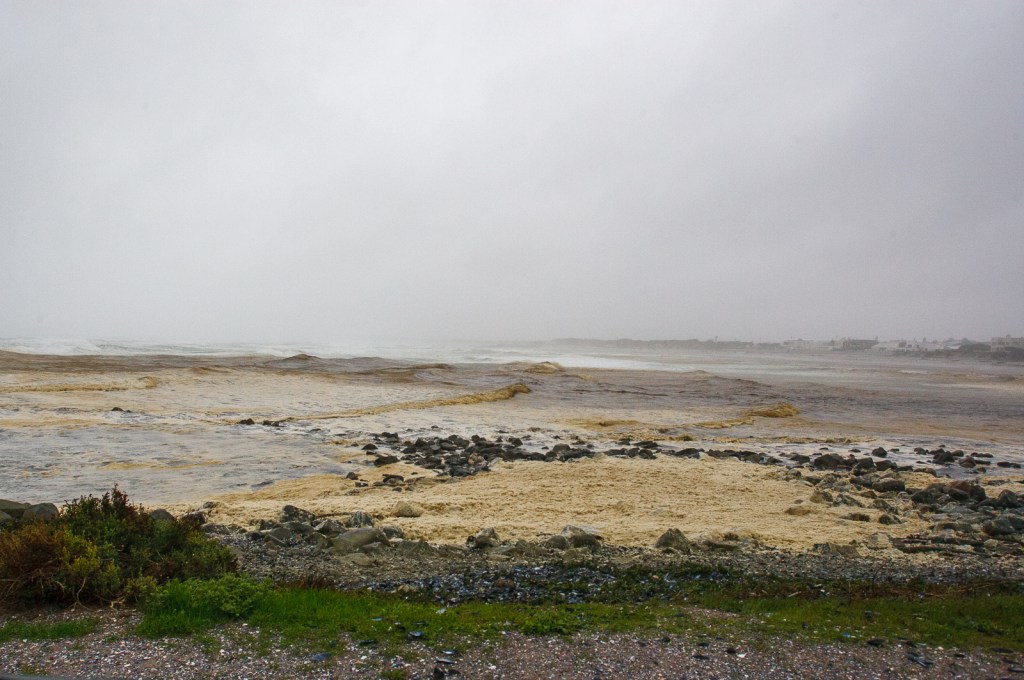 There will be no surfing today. Even the gulls huddle in the wet rather than ride the gusts of wind. The beaches are riddled with the debris of excess, and the waves are covered by the foam of crushed kelp.
